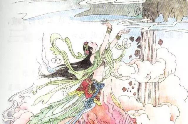 两个英雄人物,水神共工氏和火神祝融氏,在不周山大战,结果共工氏因为大败而怒撞不周山,引起女娲用五彩石补天等一系列轰轰烈烈的动人故事。