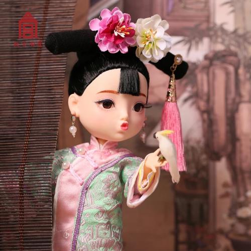 因此,故宫文创根据中国人的传统五官印象,设计成此款乌发杏眼,宽额小嘴的中国娃娃。故宫文创方面表示,首次娃娃选择了清代服饰,并在工艺允许的基础上努力还原真实的清朝格格形象,之后还会陆续推出不同朝代的格格或公主服饰单品。