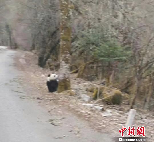 “我慢慢停下车,看到大熊猫躲在距车辆几米外的一颗大树边,不时伸出头来看看路上的车辆和行人。”李天明说,整个过程不到两分钟,随后这只大熊猫用小跑的方式通过马路,钻进山上的树林中。车上的游客都十分兴奋,大家一边拍照一边发出惊叹“大熊猫太可爱了!”
