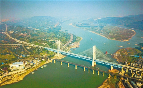 图为新白沙沱长江特大桥(后)。 新华社记者 刘 潺摄