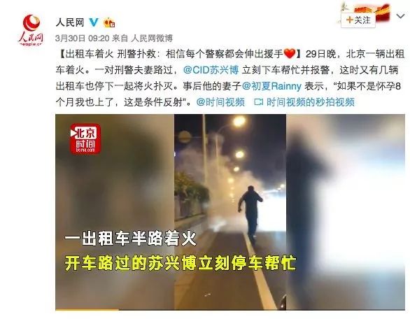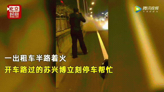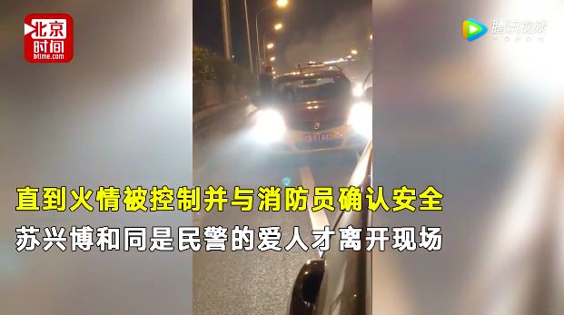 一对警察夫妻开车路过,丈夫苏兴博表示,当时看到出租车已经有火苗冒出来了。