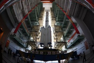 这是垂直组装厂房里的神舟九号船箭塔组合体。新华社记者王建民摄