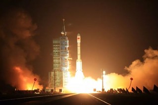 2011年9月29日,中国在酒泉卫星发射中心用长征二号F运载火箭将天宫一号目标飞行器发射升空。新华社记者王建民摄