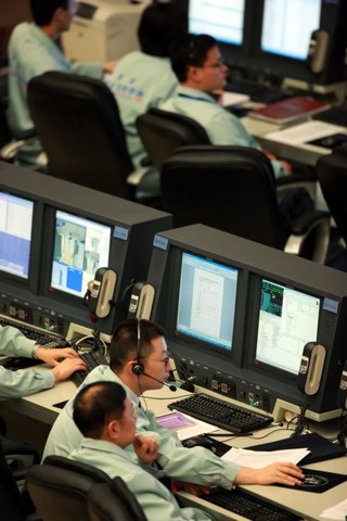 2011年9月29日,北京飞控中心工作人员在做准备工作。天宫一号发射在即,北京航天飞行控制中心各项工作准备就绪。新华社记者王永卓摄