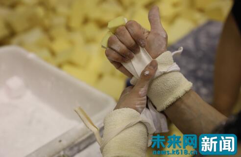 章瑾在往手上抹镁粉 进行训练前的准备 未来网实习记者 刘文静 摄