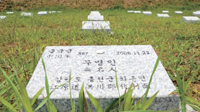 在韩国京畿道坡州市积城面沓谷里有一座墓地,距离朝韩军事分界线仅有6.3千米,这里安放着数百具志愿军烈士遗骸。墓碑上标注着这些烈士遗骸挖掘的时间、地点,但因年代久远,志愿军遗骸身份难以确定,只能用中文和韩语标明“中国军无名人”。