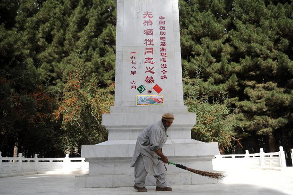 照片中的守墓人,名叫阿里 艾哈迈德。这位普通的巴基斯坦老人自1978年起自愿在这里守护陵墓,当时年仅22岁。他说:“在公路的修筑过程中,我亲眼看到中国人为巴基斯坦的发展进步昼夜劳作,为我们牺牲,他们让我非常感动、很受鼓舞。只要我活一天,我在这里的工作就不会停歇。”