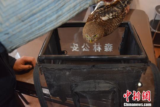 图为民警放生斑头鸺鹠 黑萍英 摄