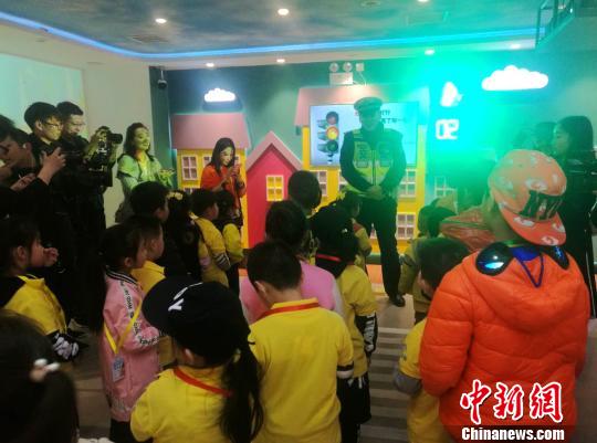 图为交通警察当日到教育馆内为孩子们普及交通安全知识。刘鹏 摄