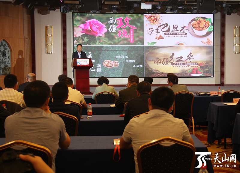 5月30日,中央电视台“国家品牌计划—广告精准扶贫”项目新疆推介产品发布会在乌鲁木齐市举行,和田玫瑰、莎车巴旦木、南疆核桃、南疆红枣四个新疆推介产品入选精准扶贫项目。