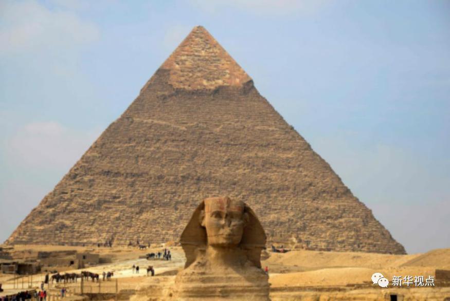 ↑2018年2月15日在埃及首都开罗郊区拍摄的海夫拉金字塔和狮身人面像。新华社发