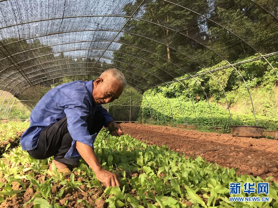 吴恒忠在重庆市潼南区花岩镇龙怀村自家大棚里劳作(6月6日摄)。新华社记者周文冲摄