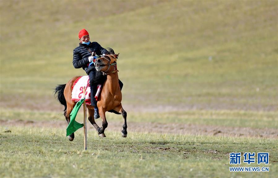 改则县改则镇日玛村的一名骑手在草原上表演跑马(8月6日摄)。当日,西藏阿里地区改则县许多刚刚收获完羊绒的牧民相聚草原,赛马休闲,喜庆丰收。 新华社记者 张汝锋 摄