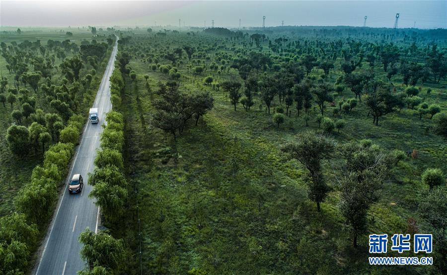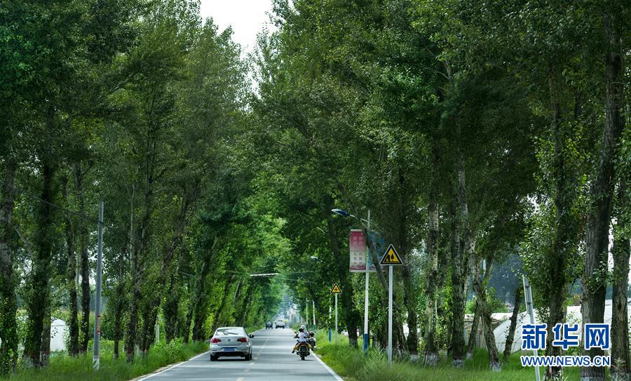 陕西榆林市靖边县东坑镇东胜村道路两侧的大树(7月31日摄)。新华社记者 陶明 摄