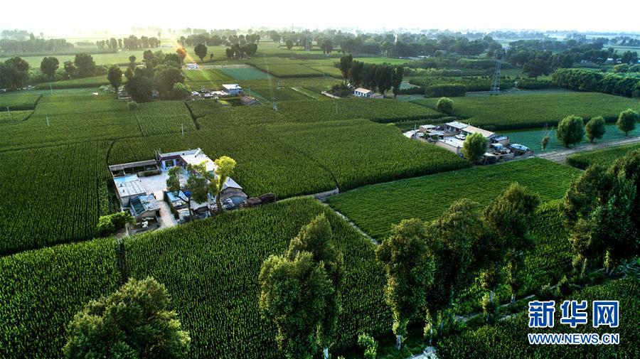 陕西榆林市靖边县东坑镇新建村绿色包围中的农家小院(7月31日无人机拍摄)。新华社记者 陶明 摄