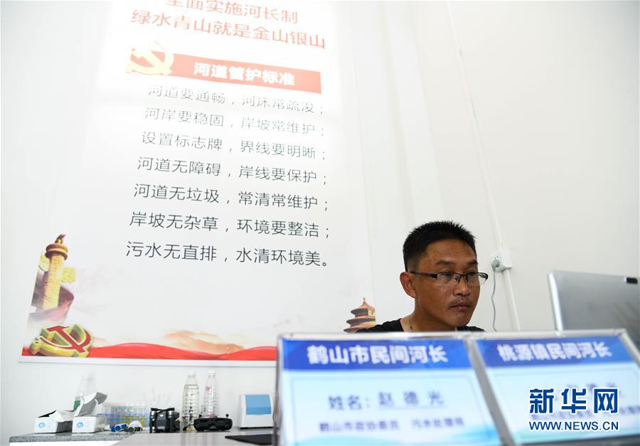 广东省鹤山市“民间河长”赵德光在办公室内工作(7月12日摄)。 新华社记者 邓华 摄