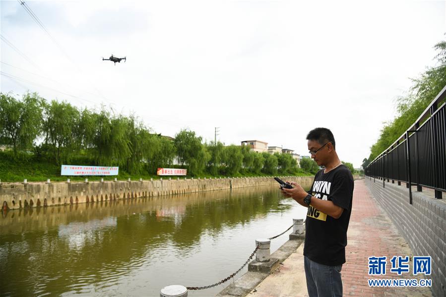 广东省鹤山市“民间河长”赵德光用无人机巡查桃源河河道(7月12日摄)。 新华社记者 邓华 摄