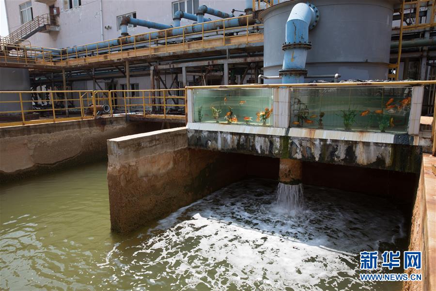 在铜陵有色金冠铜业分公司排水口,展示着用经过处理后的达标废水养鱼(8月8日摄)。 作为长江经济带中承东启西、承上启下的重要节点,安徽省围绕调结构、优布局、强产业全链条,立足沿江产业基础和比较优势,转型升级,绿色发展。长江流经安徽416公里,素有“八百里皖江”之称。 新华社记者金立旺摄