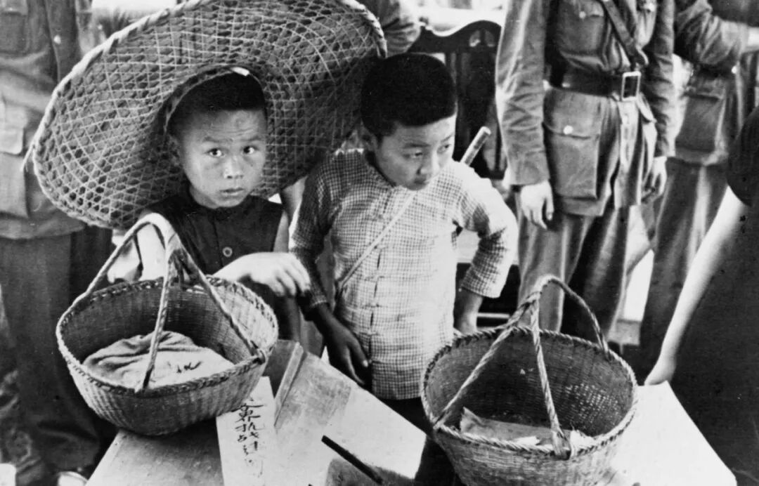 1938年7月7日,武汉民众开展抗日献金运动。这是卖白兰花的儿童把售花所得献给抗日运动。新华社发