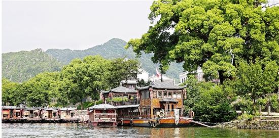 要从“古堰”到“画乡”,需乘船渡河。只见江水两岸芦苇摇曳,帆影偶现,野趣横生。“现在我们正行驶在瓯江之上。目前古堰画乡小镇92.8%段面的水质常年保持国家Ⅱ类水标准。景区拥有浙江省保存最完整的生态河川景观,沿江两岸滩、屿、岛、林等自然资源与堰、港、坝、村等人文资源相互映衬,使其成为丽水巴比松油画的发祥地和‘中国摄影之乡’的主要创作基地。”雷建华说。