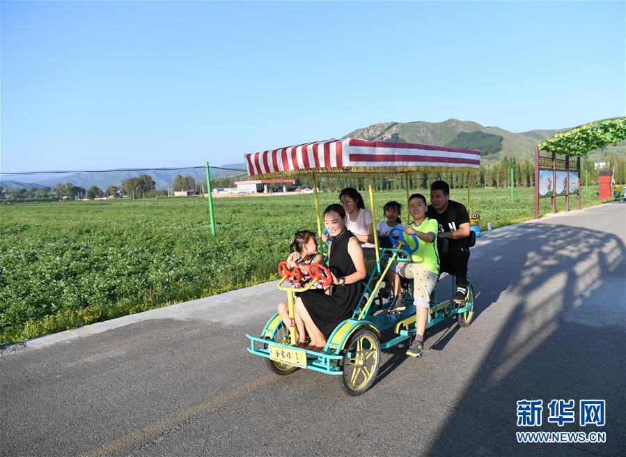 游客在位于岚县河口乡王家村的土豆种植基地游览(8月14日摄)。 新华社记者杨晨光摄