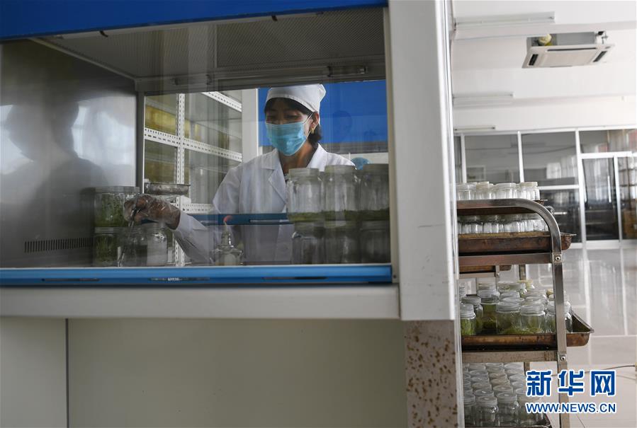8月15日,在位于岚县普明镇大贤村的山西康农薯业有限公司,技术人员在无菌接种室工作。山西康农薯业有限公司主要从事脱毒马铃薯的研究、生产,相比普通品种,脱毒马铃薯产量更高,这一技术惠及岚县全县及周边县市。 新华社记者杨晨光摄