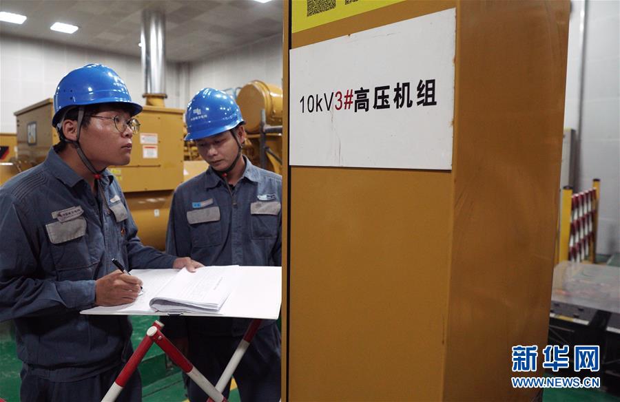 7月31日,在海南省三沙市永兴岛南方电网三沙供电局,工作人员在检查发电机组状态。