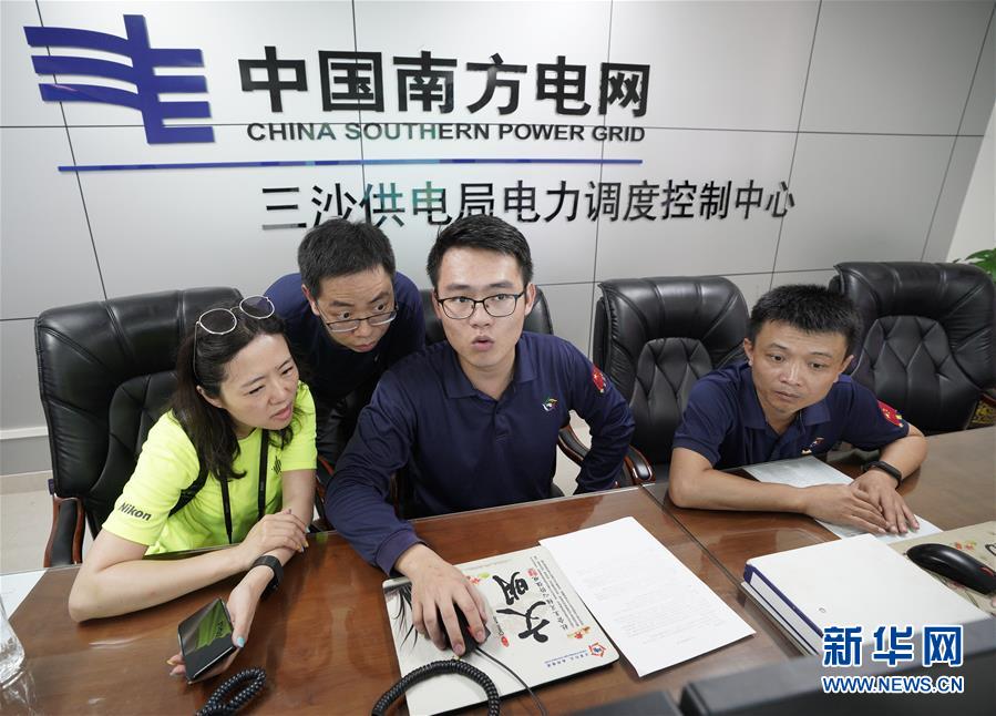 7月31日,在海南省三沙市永兴岛南方电网三沙供电局电力调度控制中心,工作人员向媒体记者介绍情况。 新华社记者 才扬 摄