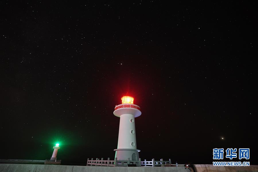 这是7月31日晚在海南省三沙市永兴岛拍摄的屹立在黑夜中的灯塔。 新华社记者 才扬 摄