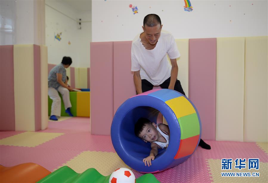 8月16日,在陕西宁陕县城关镇城南儿童早期发展活动中心内,家长陪伴孩子进行早教训练。新华社记者 刘潇摄