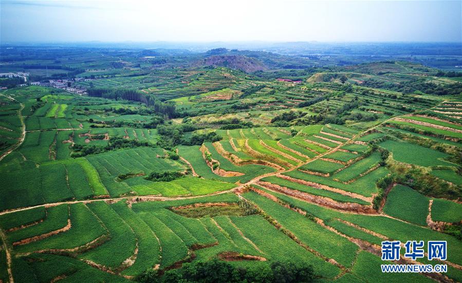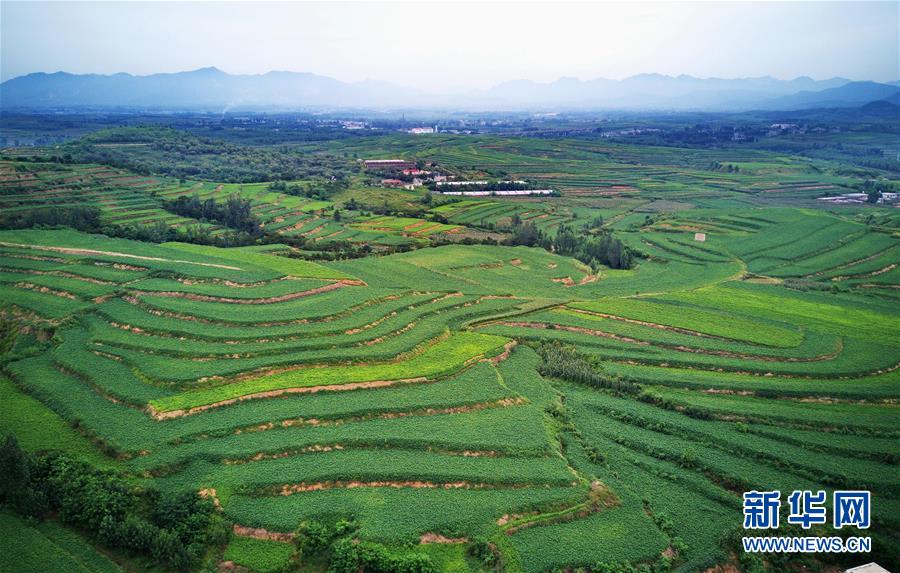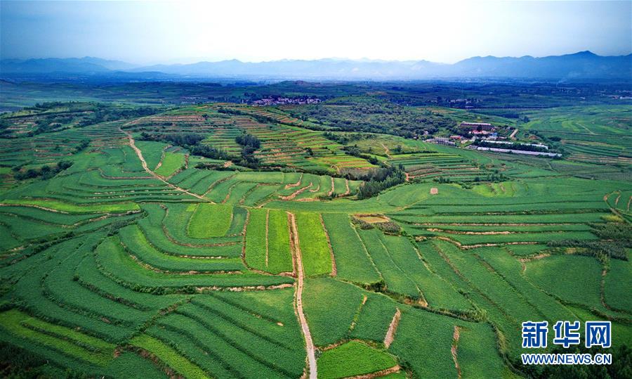 8月23日无人机拍摄的卢龙县潘庄镇翁家沟村由坡地改造的梯田。 新华社记者 杨世尧 摄