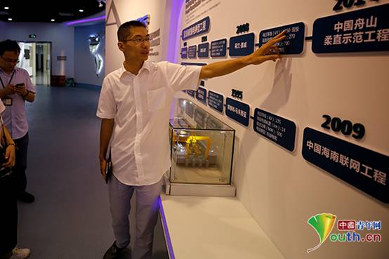 在郑新龙的办公桌上,放着半根表面泛黄的220千伏海底电缆工厂接头(部分)实物模型,泛黄的部分是海底电缆的绝缘层,是保证海底电缆绝缘性能的核心层。郑新龙表示,6根这个型号的海底电缆输送的电能,就可以支撑起整个舟山市100多万人口的全部生产生活用电。中国青年网记者刘喆摄