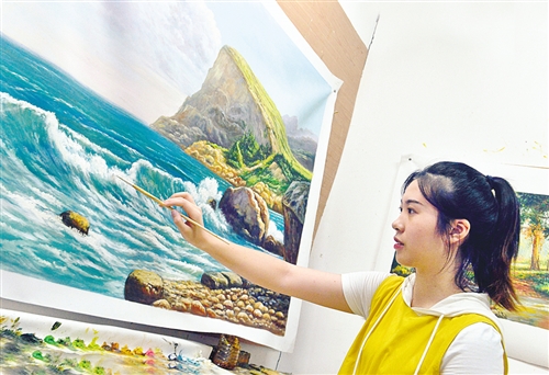 江西省黎川县油画创意产业园,画师在绘制长江油画。近年来,该县大力发展以油画为主的文化产业,油画创意产业园年创产值1.2亿元。 王武辉摄