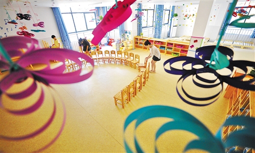 江西省新余市渝水区良山镇教师在新校舍布景。近年来,该市以整合长江流域丰富的文化和教育资源,不断提升当地文化品牌建设水平。 周 亮摄