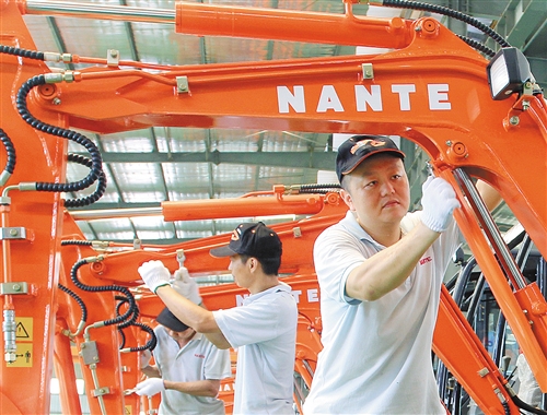▲江西省高安高新技术产业园南特机械有限公司的“扶贫车间”里,员工在安装设备。该市引导企业通过“企业+扶贫车间+贫困户”的形式,带动有劳动能力的贫困群众脱贫致富。 彭松林摄
