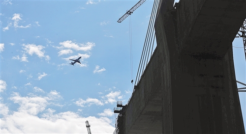▼重庆市黔江区境内在建的黔张常铁路阿蓬江特大桥。近年来,黔江区加大立体交通建设,有力推动了当地经济发展。 杨 敏摄