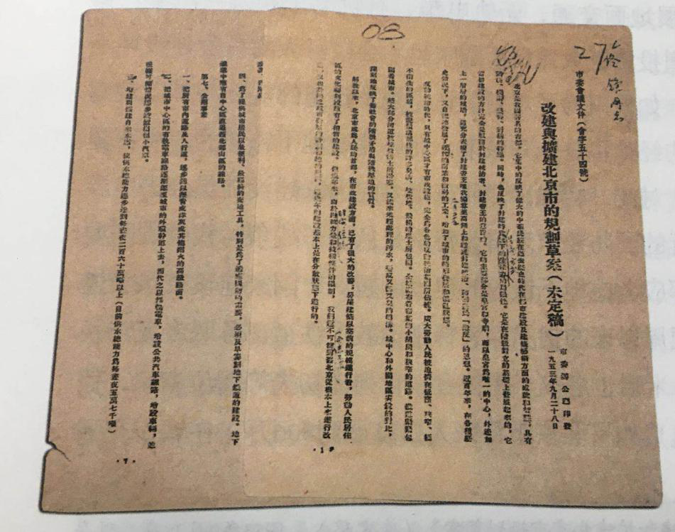 1953年北京市委《关于改建与扩建北京市规划草案》