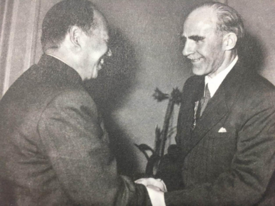 1957年3月,时任北京市委书记、市长彭真与莫斯科地下铁道设计局总地质工程师米里涅尔握手告别
