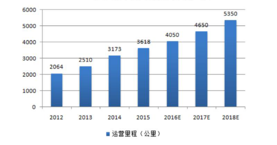 2012-2018年全国城市轨道交通历年运营里程变化图(资料图)