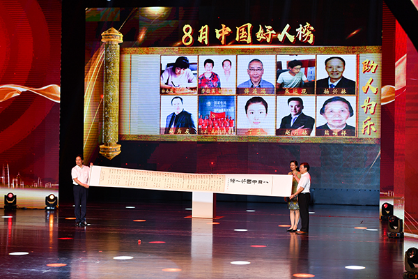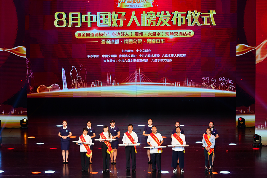 中央文明办在贵州省六盘水市举办全国道德模范与身边好人现场交流活动,并发布8月“中国好人榜”,图为8月“中国好人榜”揭晓。