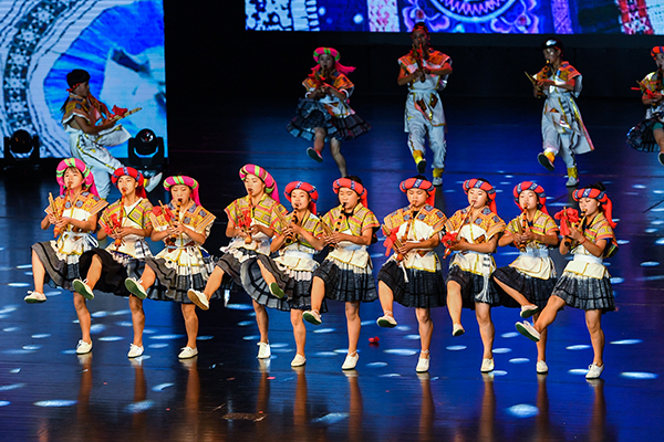 中央文明办在贵州省六盘水市举办全国道德模范与身边好人现场交流活动,并发布8月“中国好人榜”,图为现场节目表演。