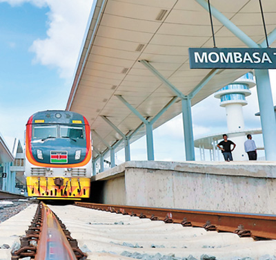 由中国承建的蒙内铁路全长约480公里,于2017年5月通车。图为列车停靠在肯尼亚蒙内铁路蒙巴萨站。新华社发