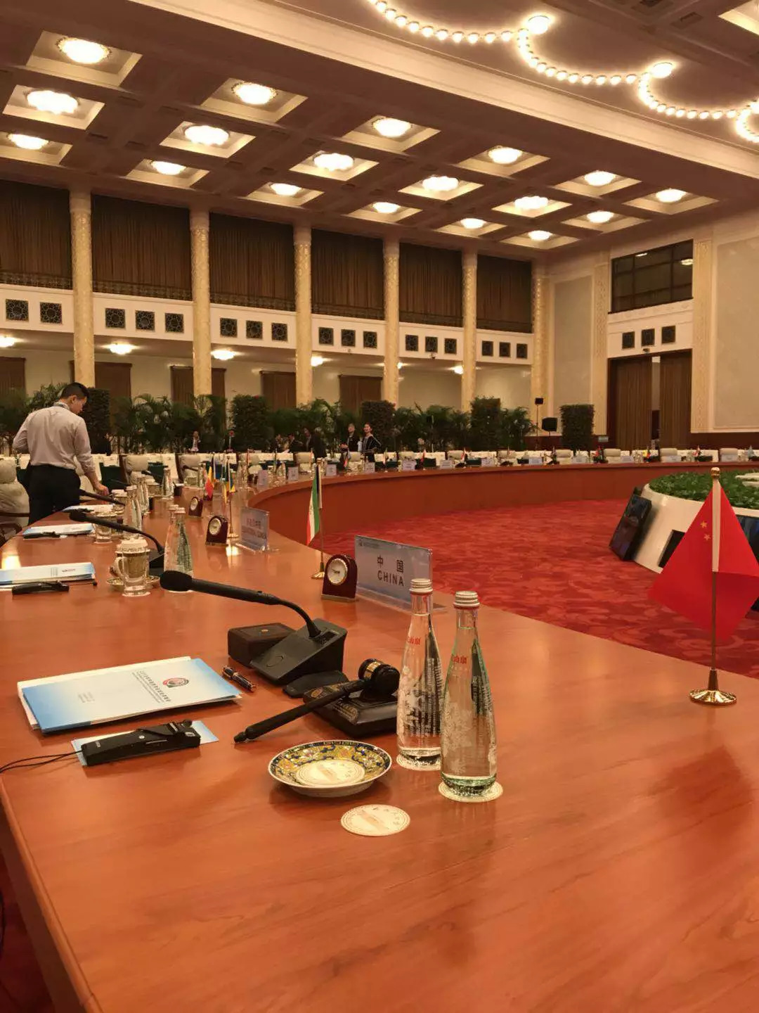 会场中央,是一张有着55个座位的大圆桌。