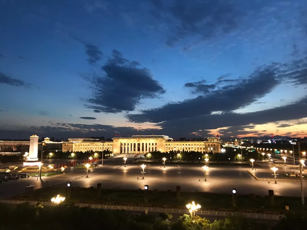 霞光辉映大会堂。习主席当晚的外事活动还在继续。