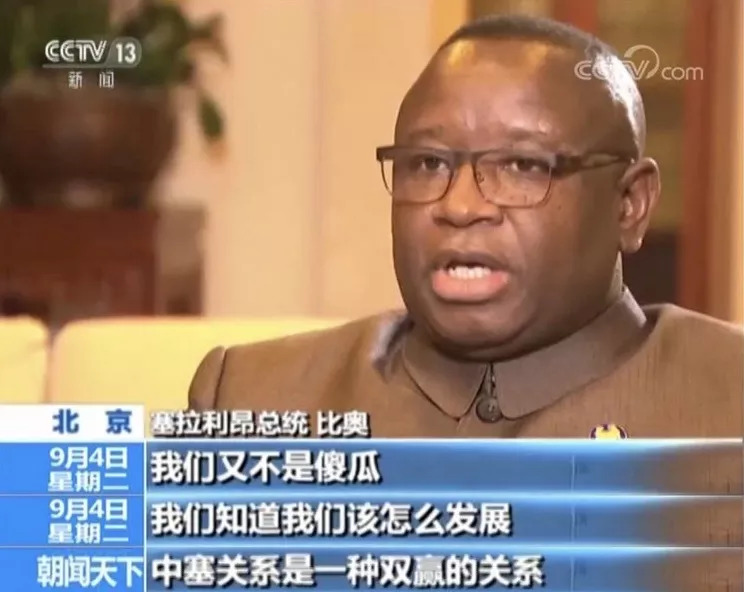 △塞拉利昂总统比奥说,“我们又不是傻瓜,我们知道我们该怎么发展。中塞关系是一种双赢的关系。”