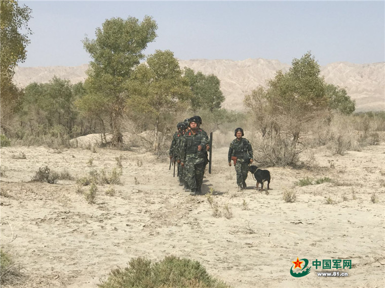 官兵们大漠巡逻。