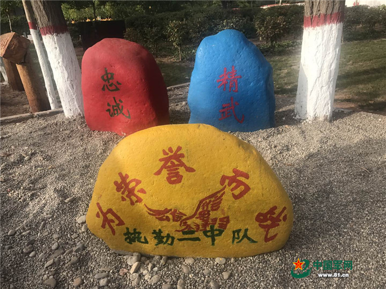 在执勤二中队营区矗立着一块花岗岩石,上面刻五个血红大字:“为荣誉而战。”这不只是口号,更是戍边卫士心中的呐喊和决心。