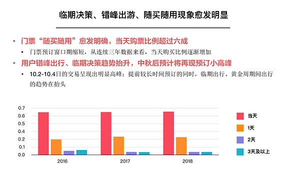 同时,随着福利年假政策的不断推广,人们也更愿意错峰出行,不仅成本有所降低,还能一定程度上避开最高峰的人流。报告预测,今年国庆期间,10月2日和10月3日,将成为在线预订或消费的最高峰。