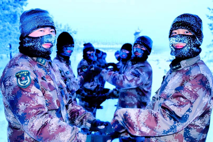 日常巡逻前,连队官兵会在户外集中训练热身,以便以更好的状态投入到巡逻中。“北极哨所”供图