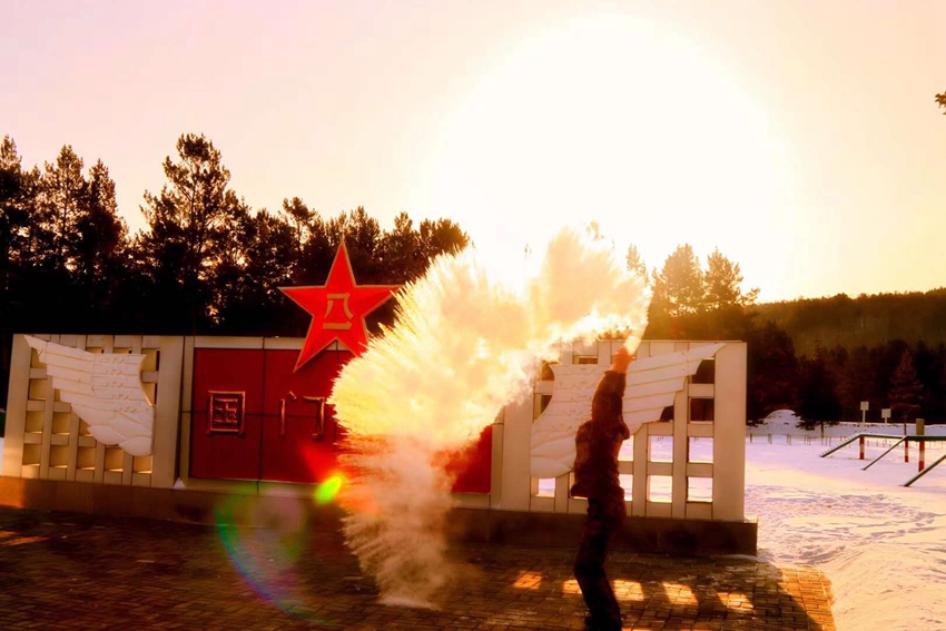 “泼水成冰”是官兵们冬日必有的户外活动“北极哨所”供图